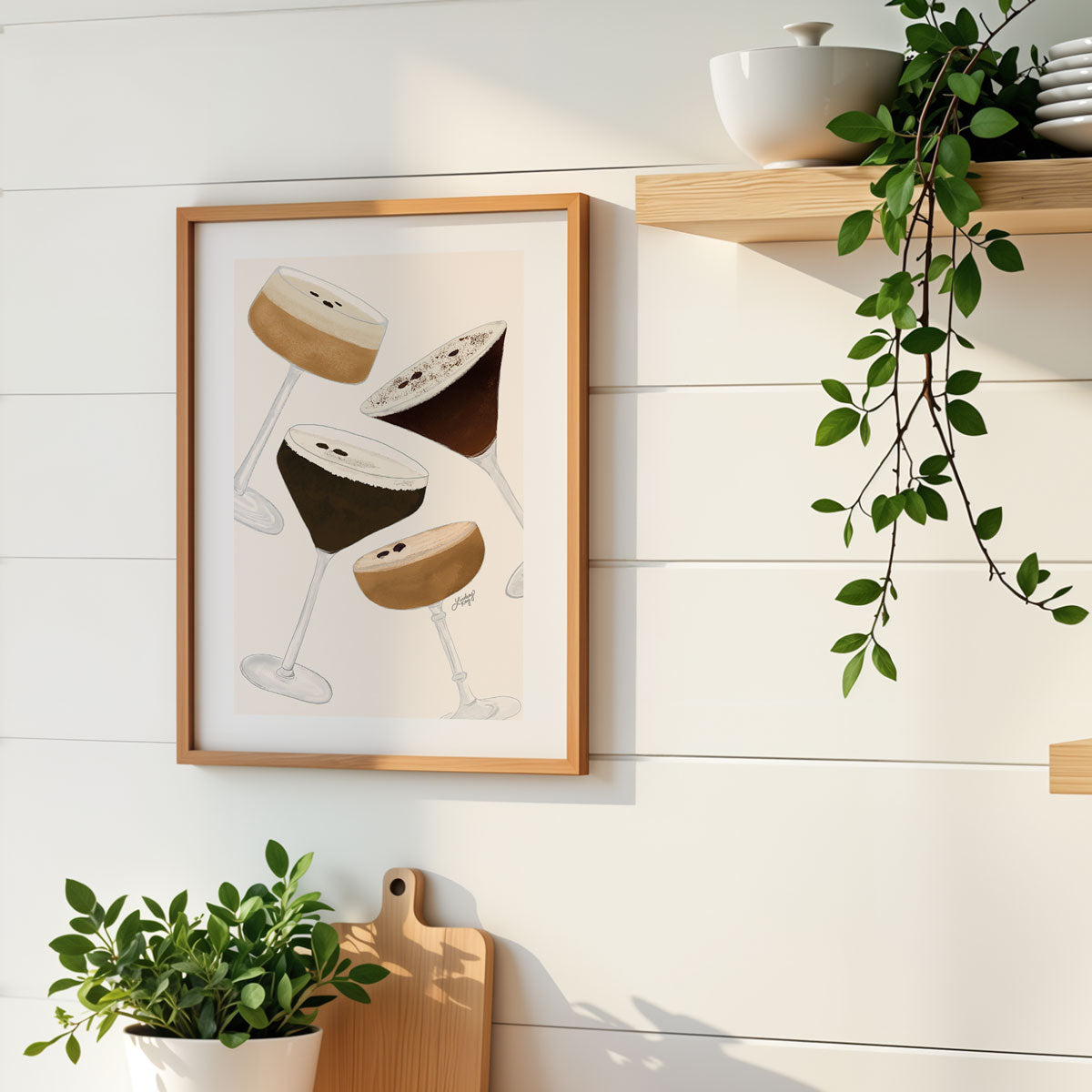 Raise a glass (or two!) with this hand-drawn espresso martini illustration – the perfect blend of chic and playful. Whether you’re a cocktail connoisseur, a bar cart stylist, or just someone who loves a good martini, this piece is a must-have. A fun and stylish addition to any wall. 🌟