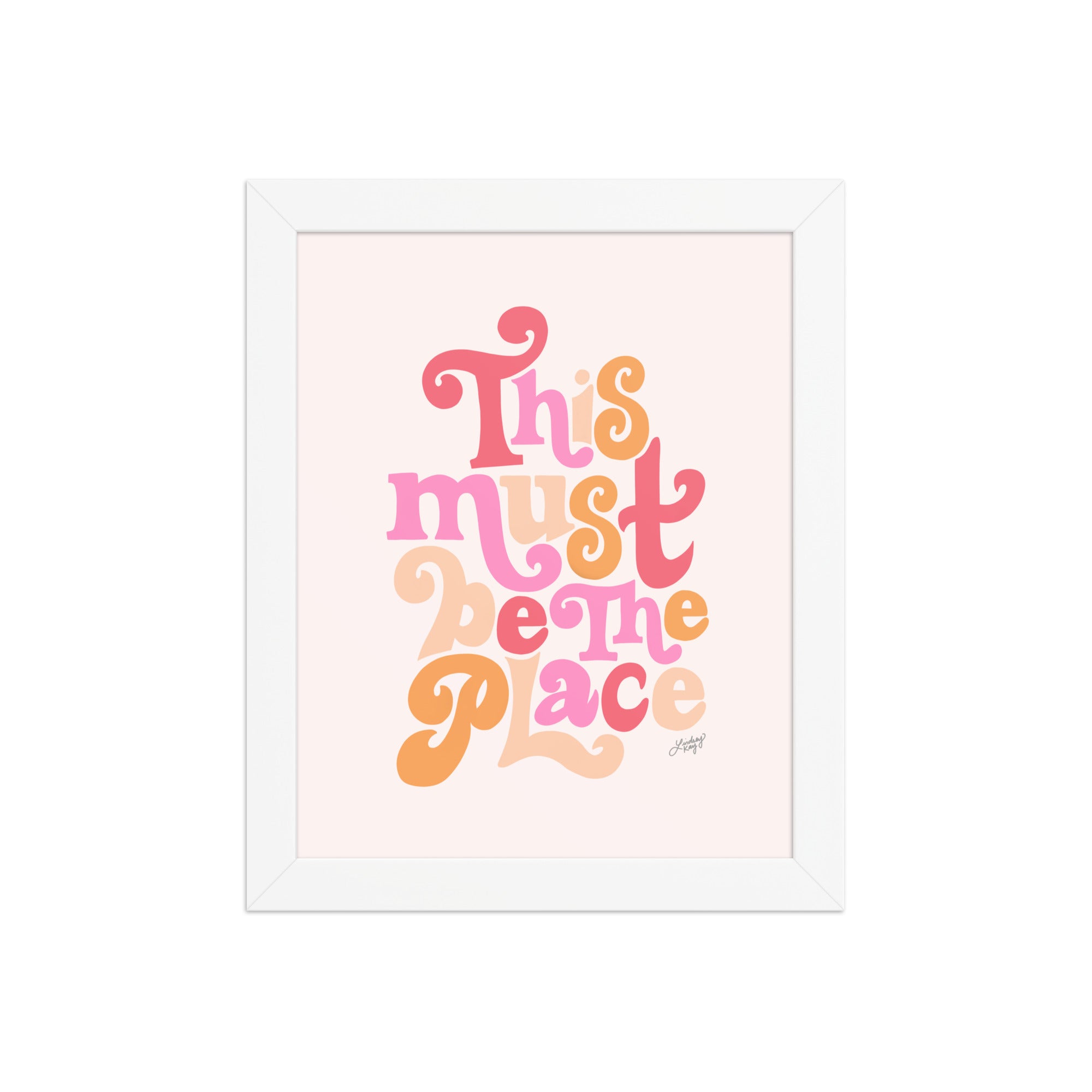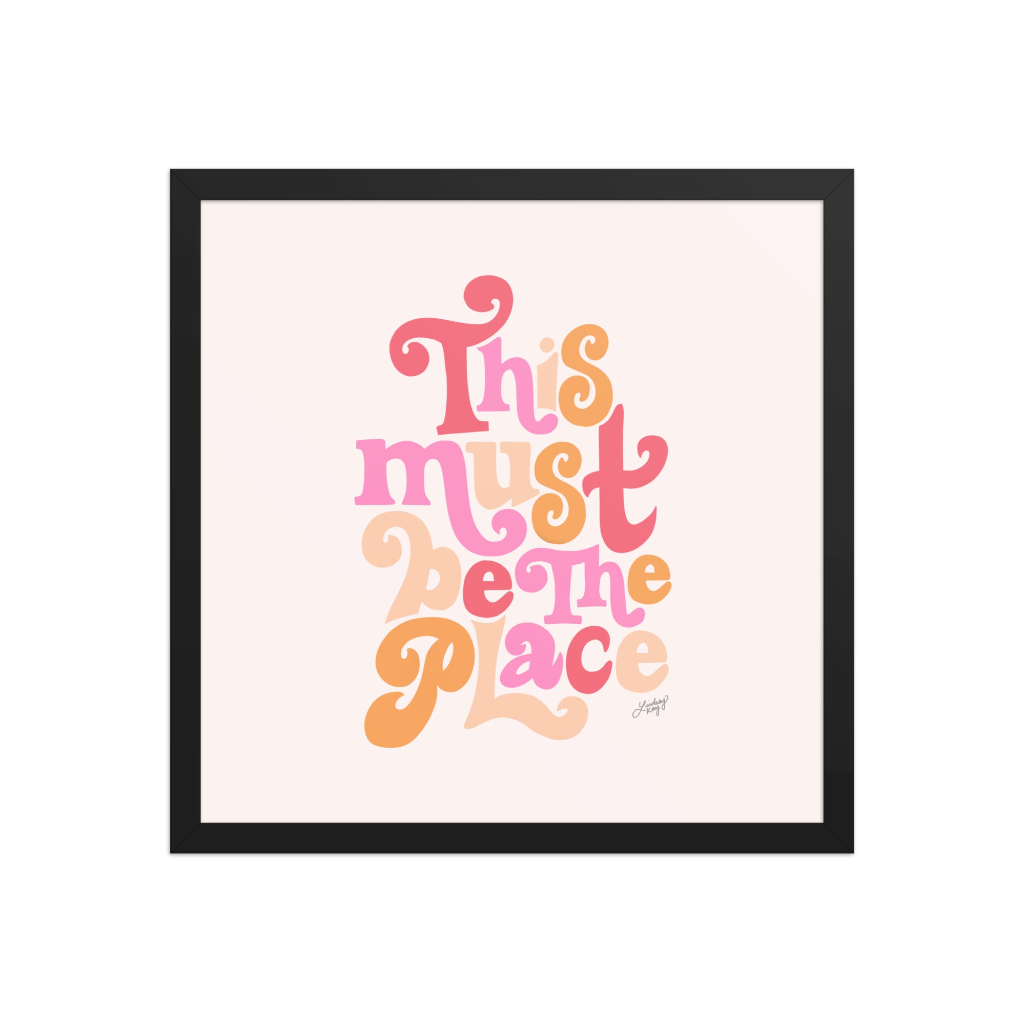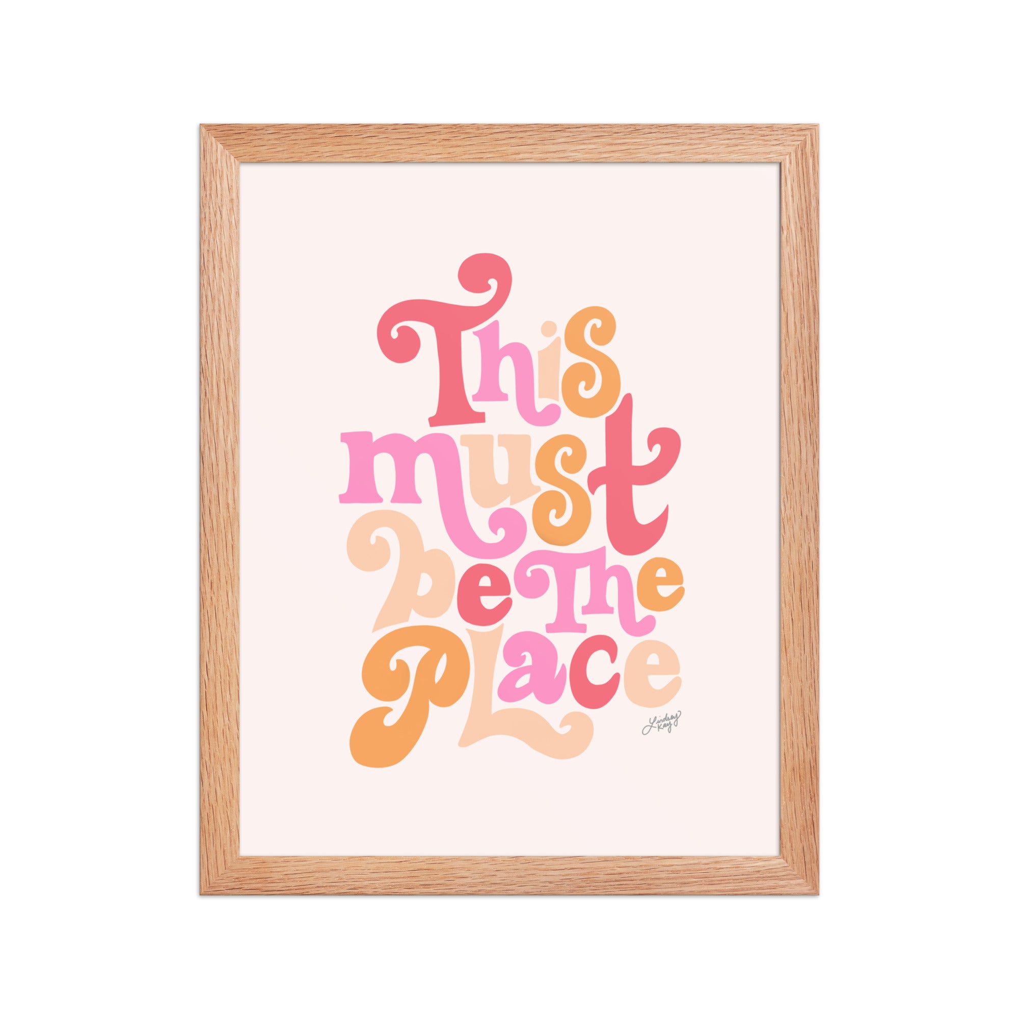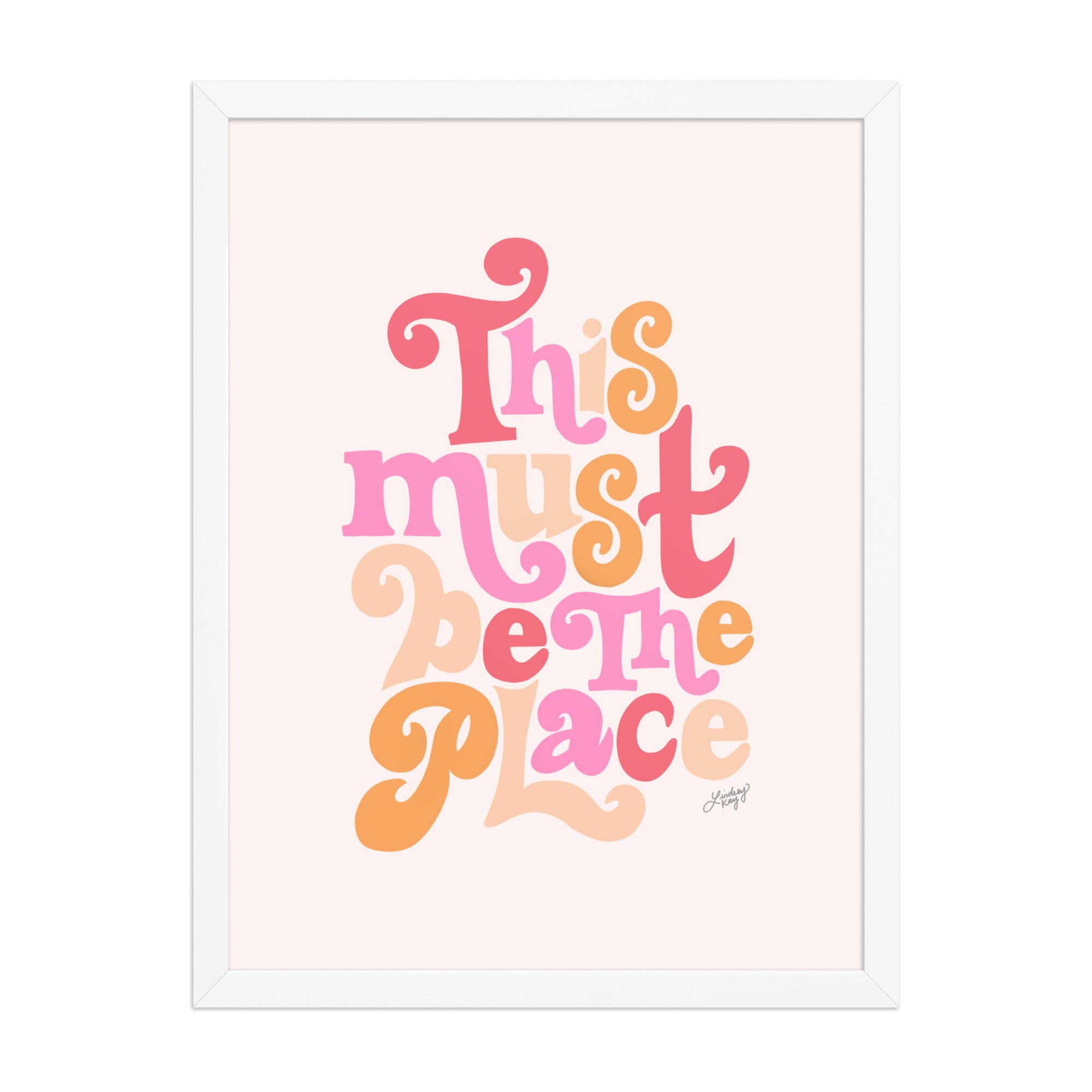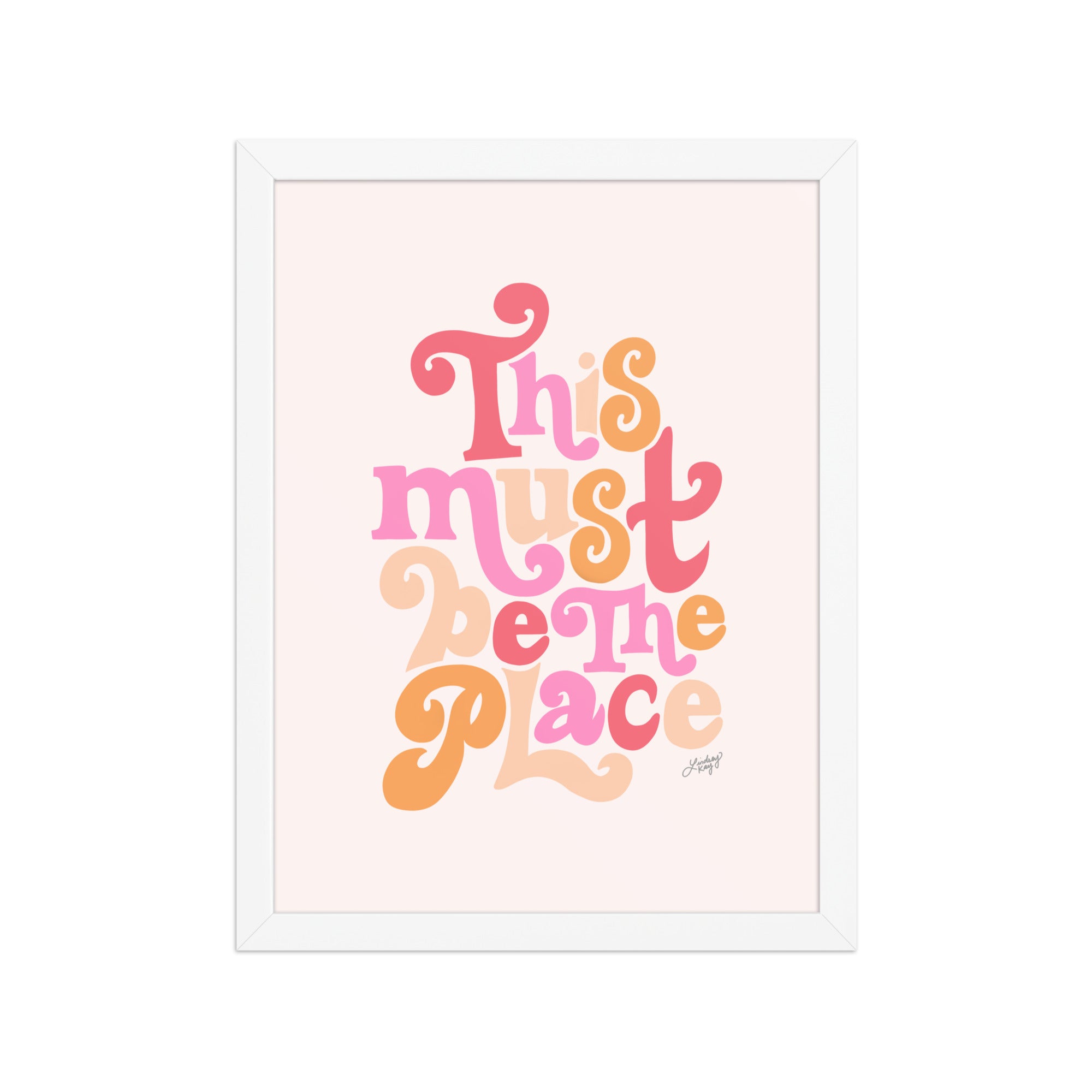 Bring color, joy, and retro vibes to your space with this hand-lettered art print that says “This Must Be The Place.” Perfect for any gallery wall, cozy corner, or office refresh, this framed print is a statement piece that feels right at home wherever you hang it. 🌈
