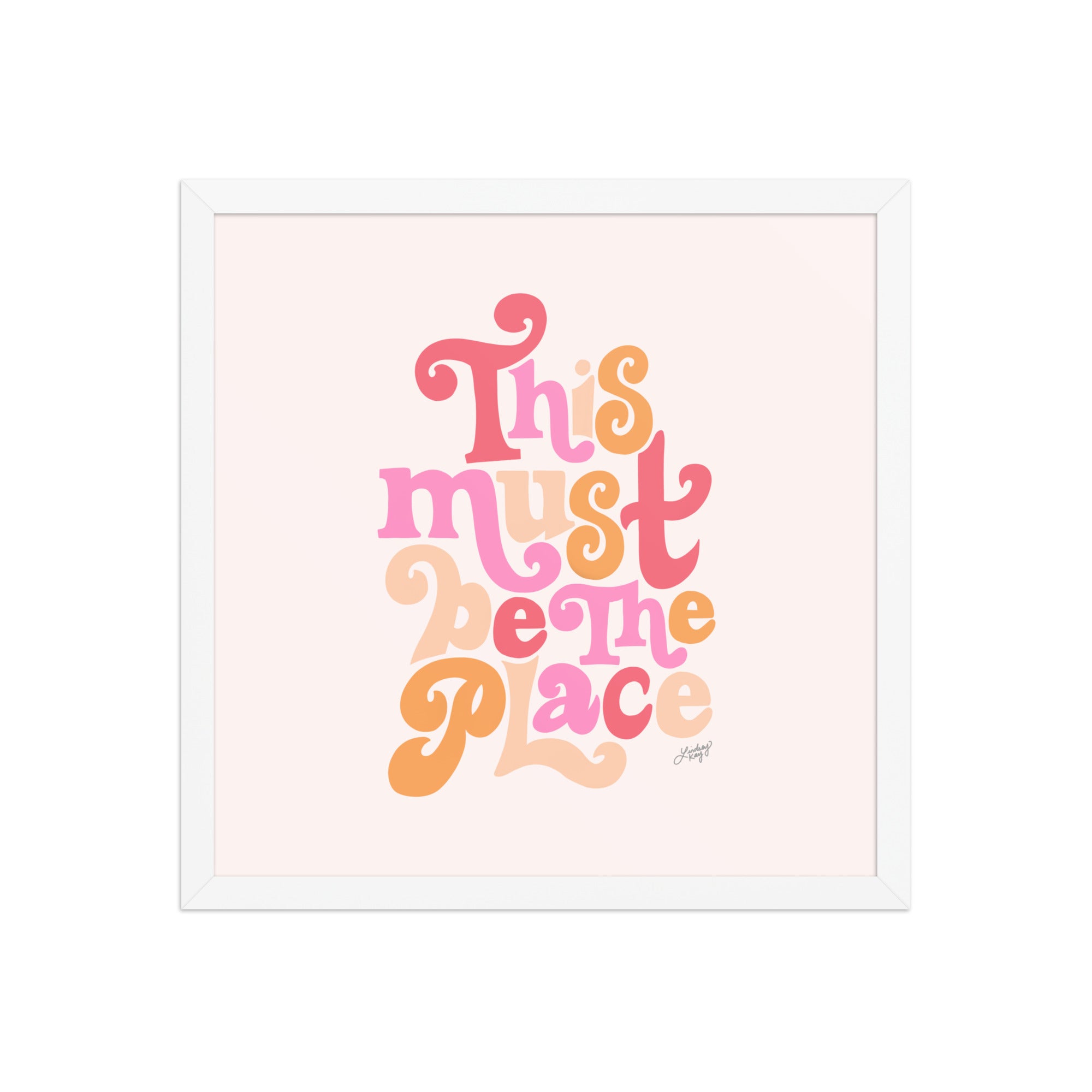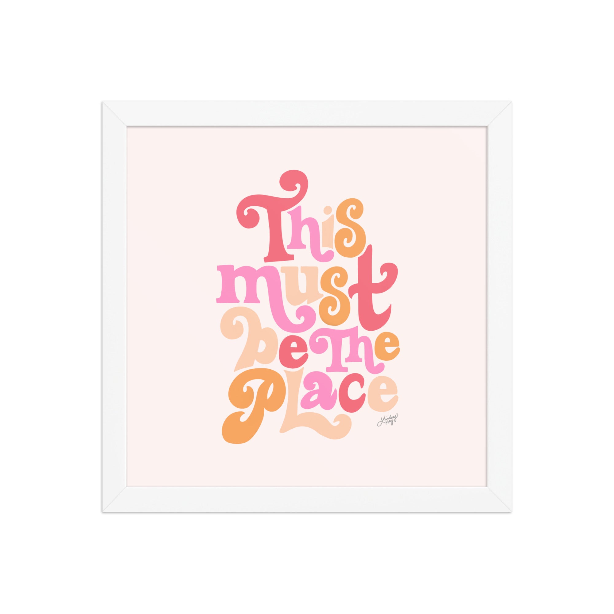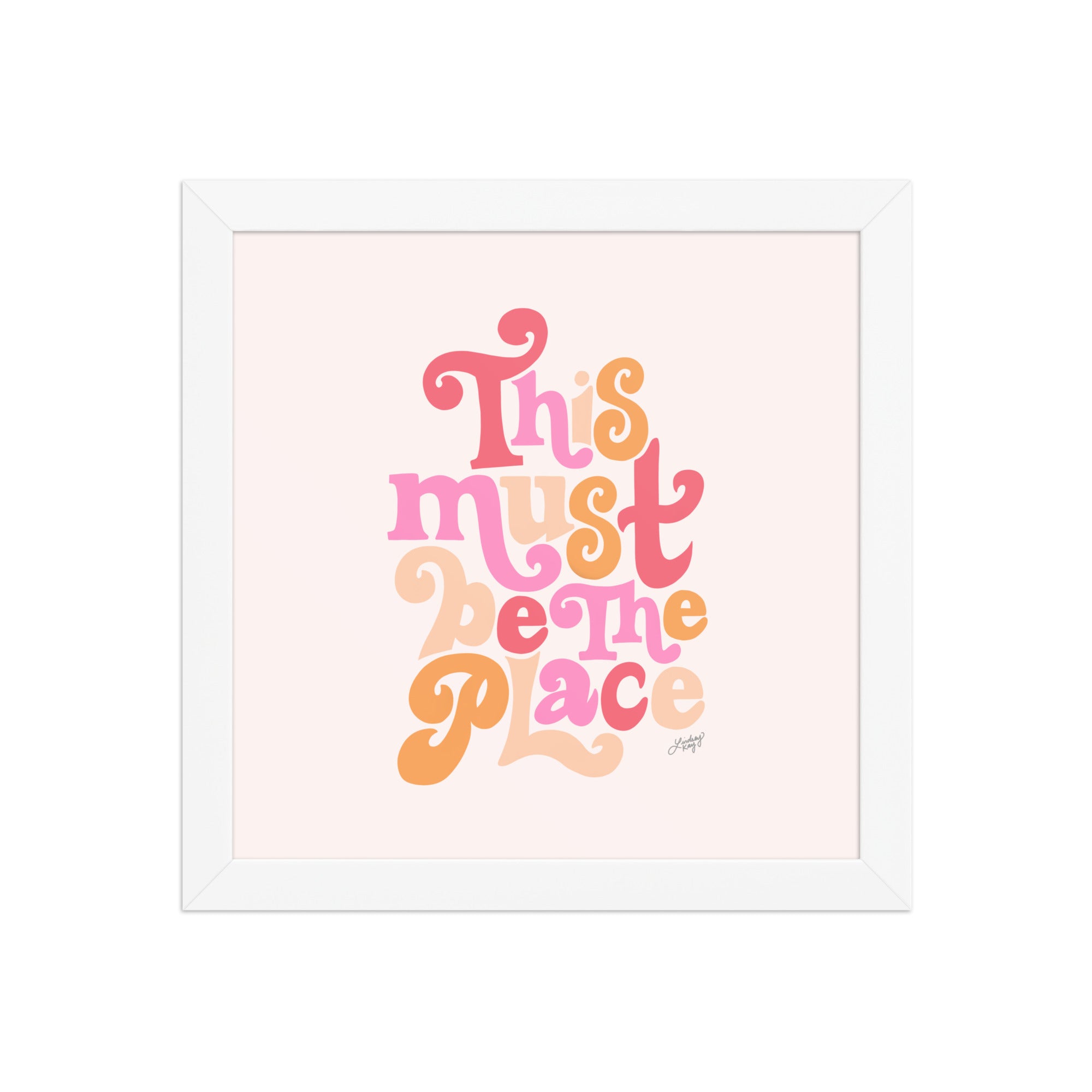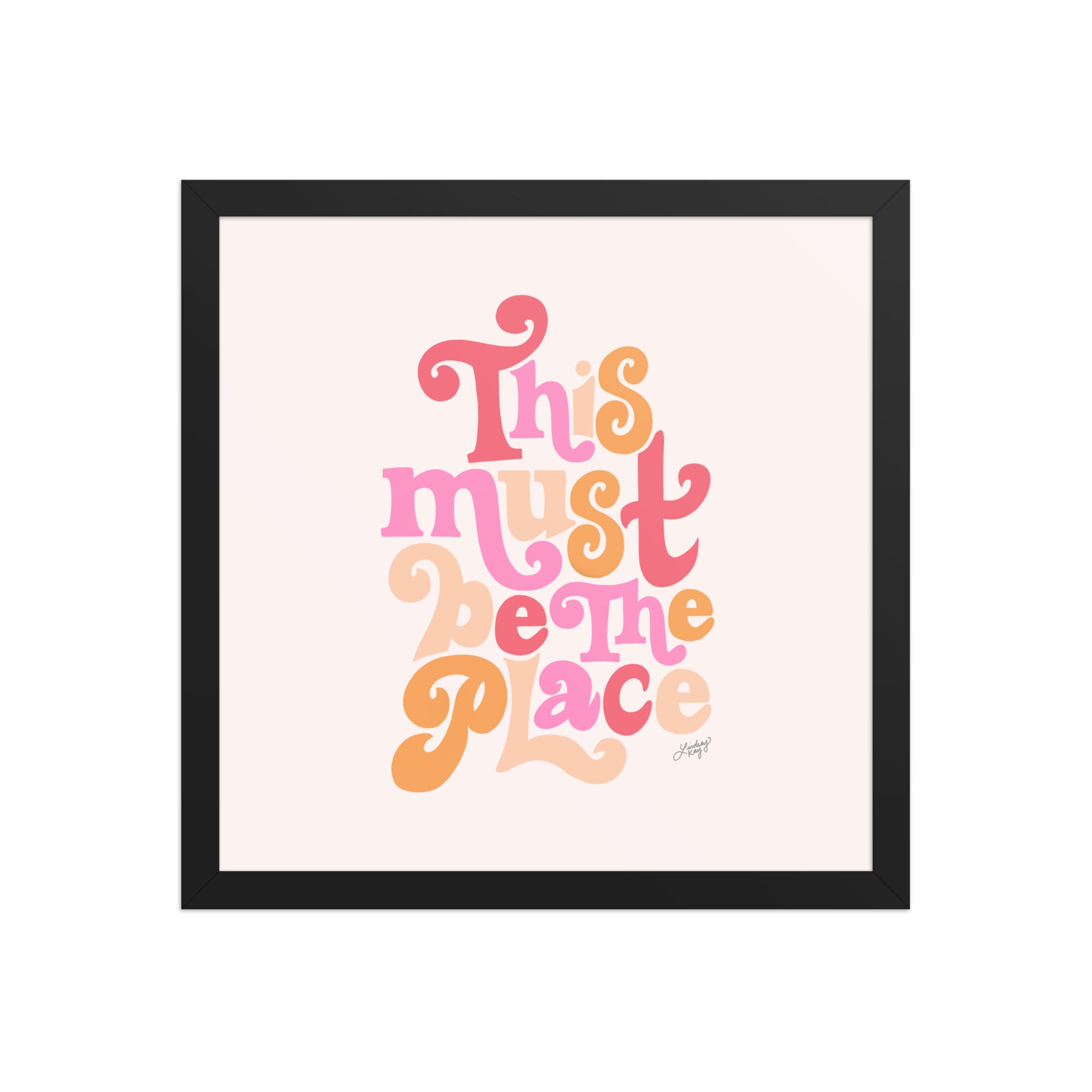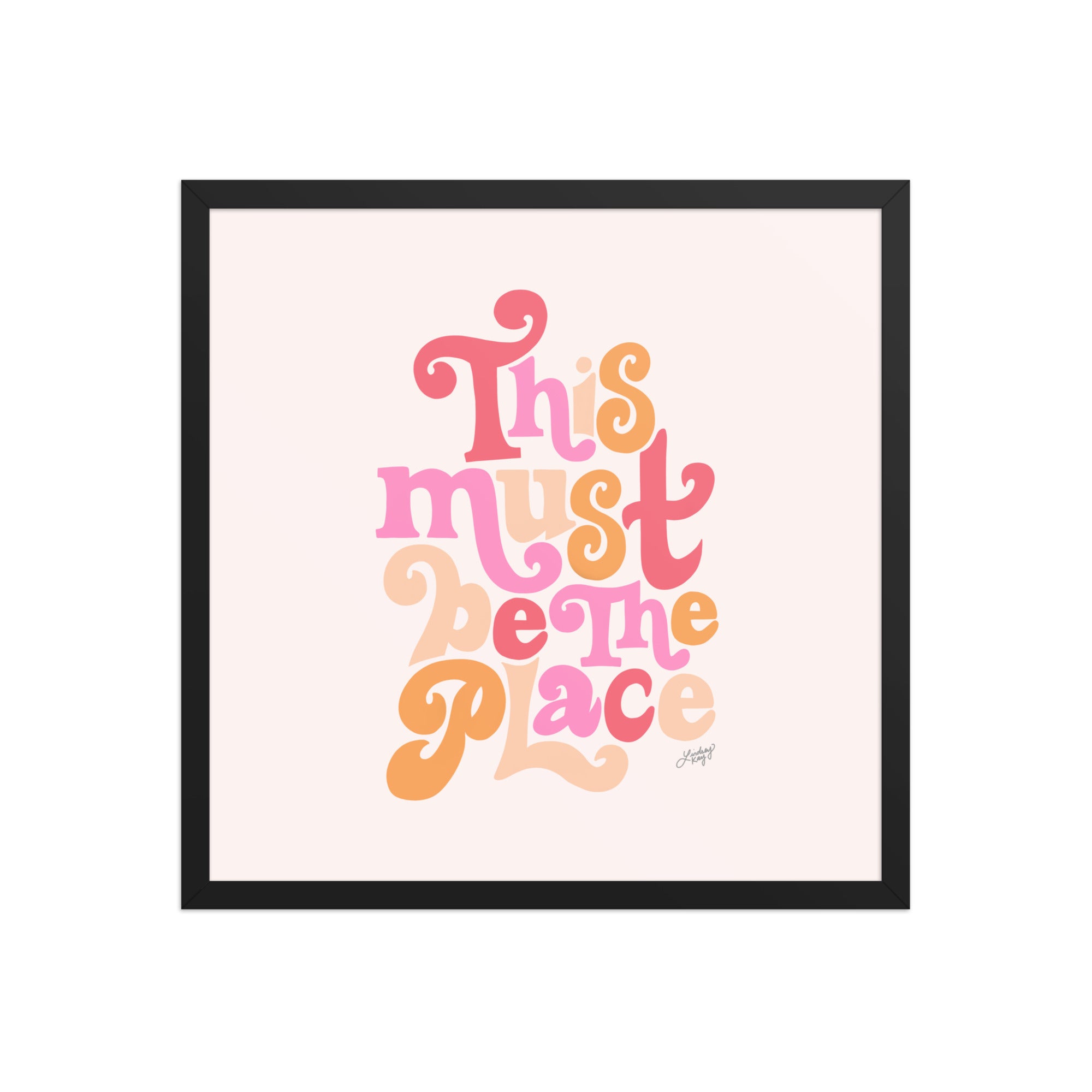 Bring color, joy, and retro vibes to your space with this hand-lettered art print that says “This Must Be The Place.” Perfect for any gallery wall, cozy corner, or office refresh, this framed print is a statement piece that feels right at home wherever you hang it. 🌈