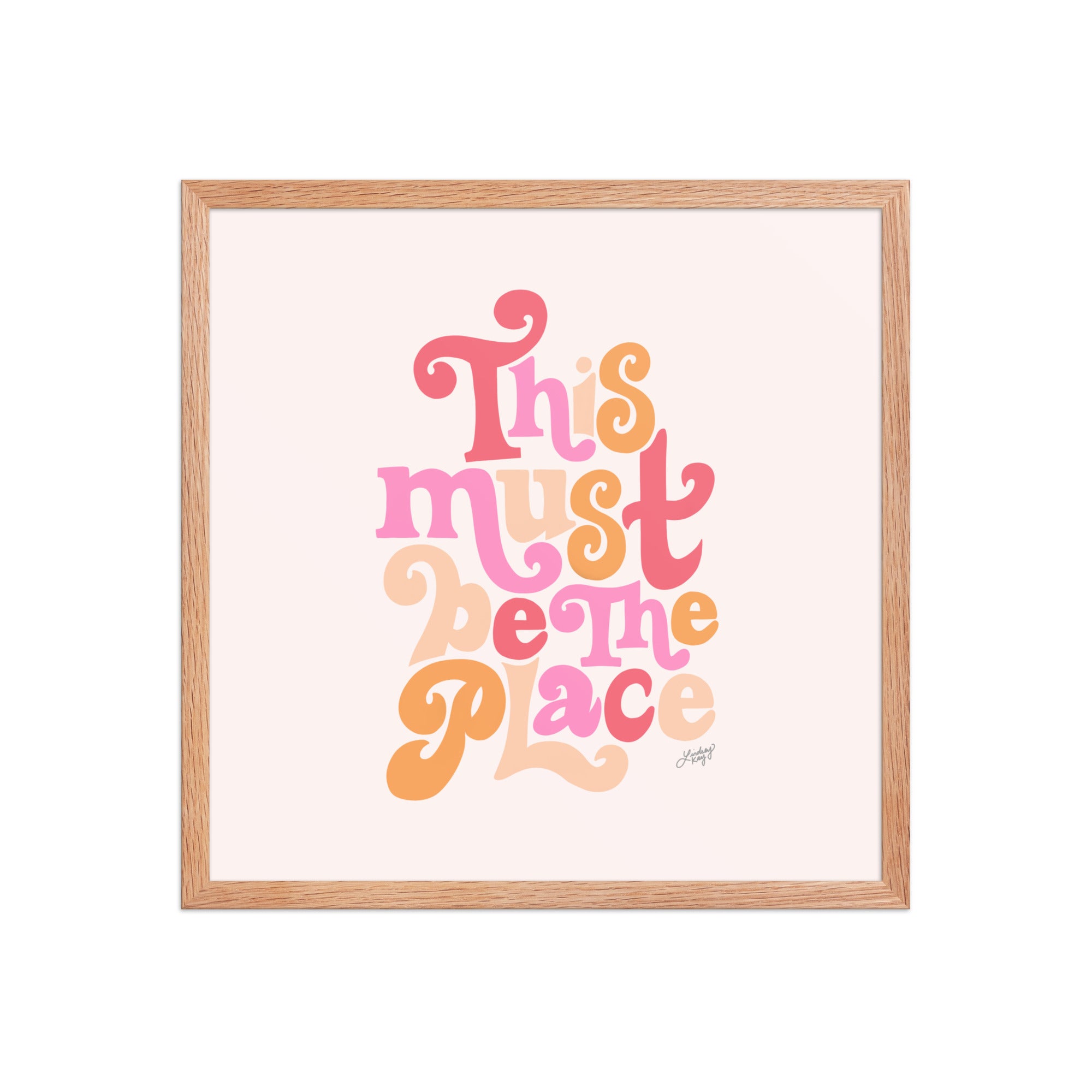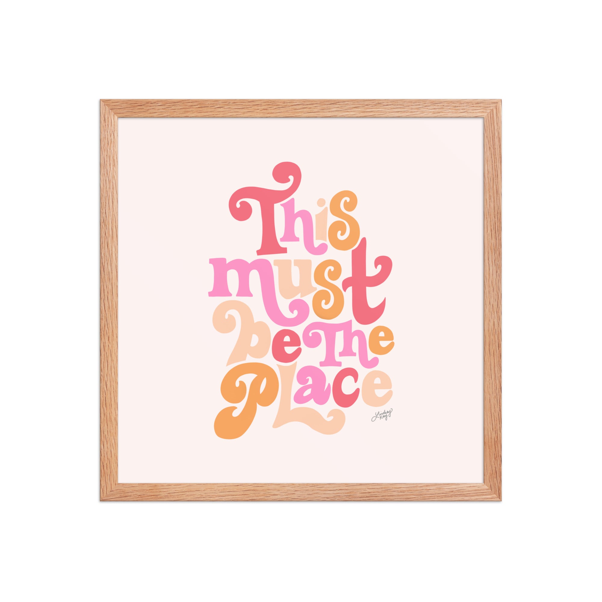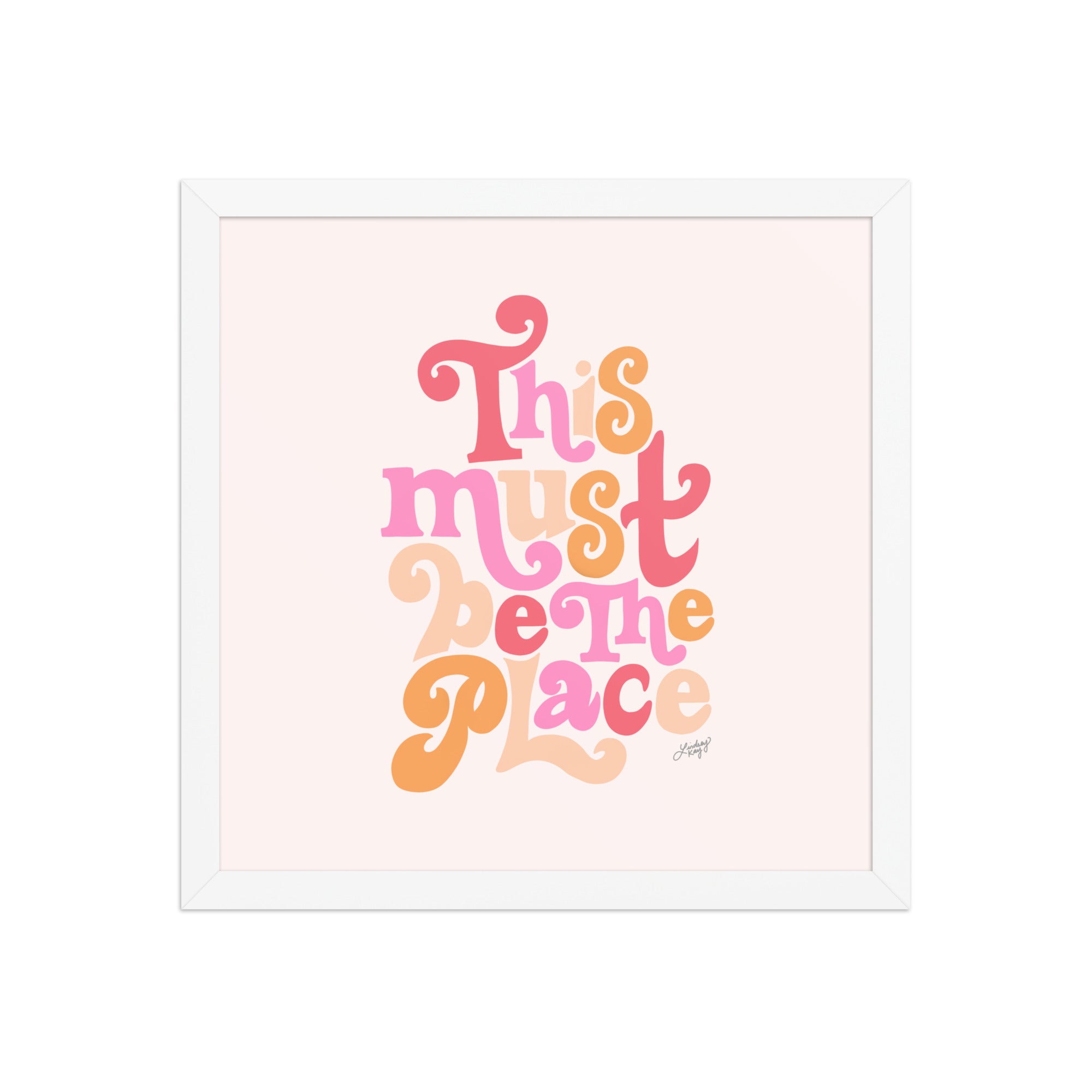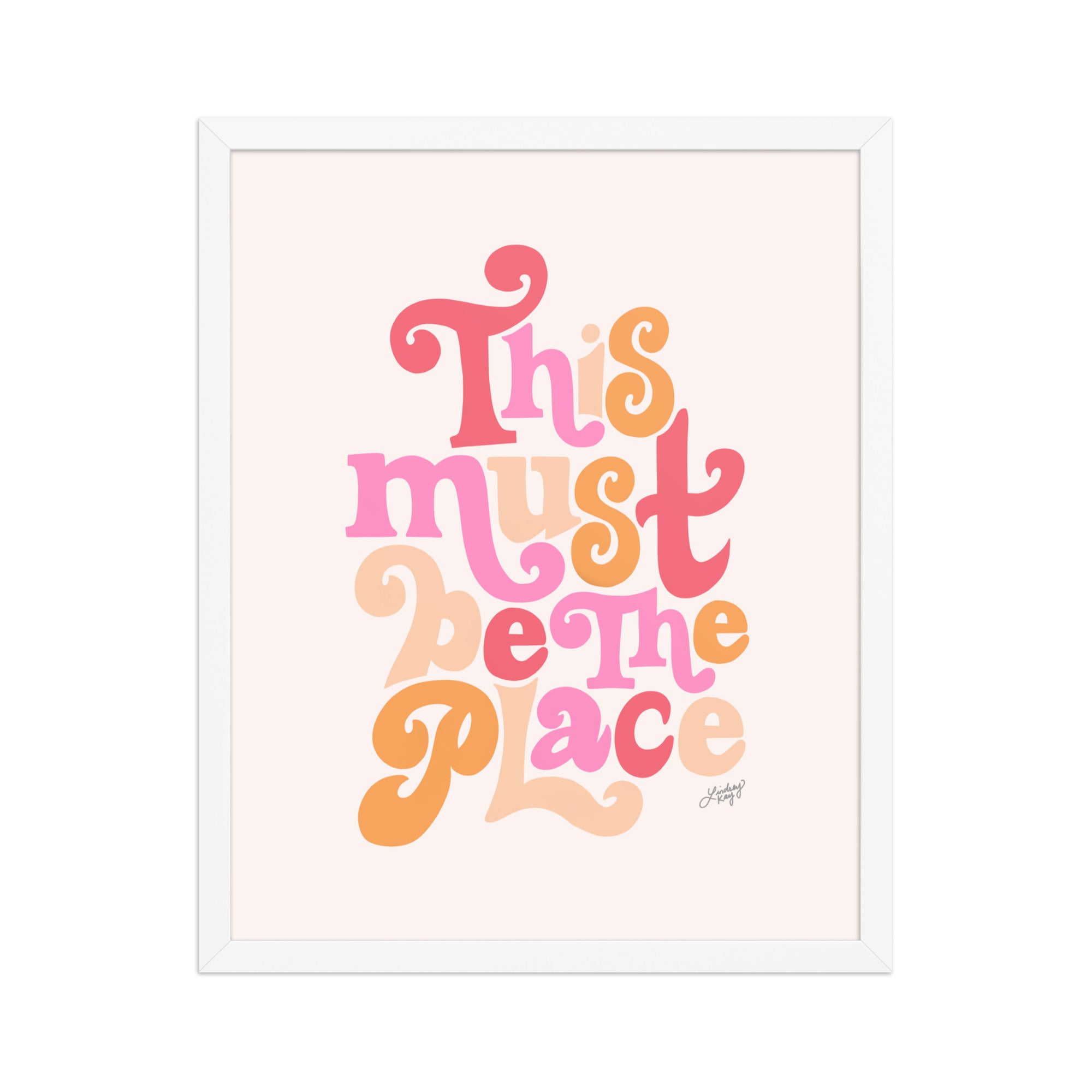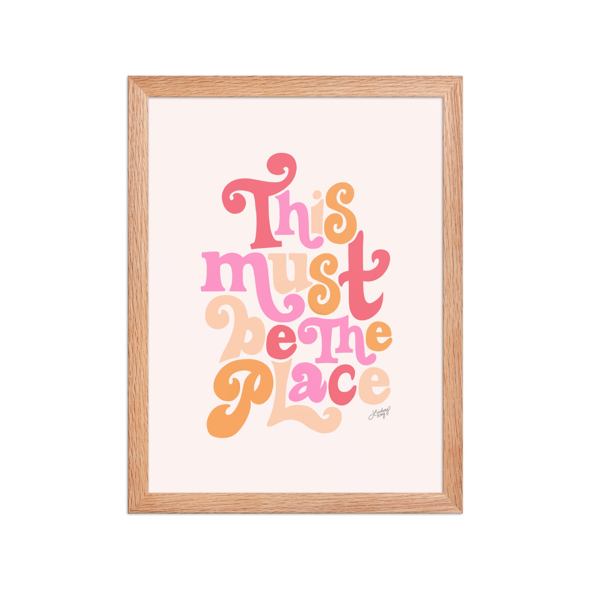 Bring color, joy, and retro vibes to your space with this hand-lettered art print that says “This Must Be The Place.” Perfect for any gallery wall, cozy corner, or office refresh, this framed print is a statement piece that feels right at home wherever you hang it. 🌈